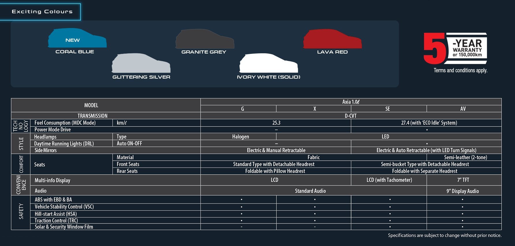 In fact, the fuel consumption of the 2023 Axia is rated at 25.3 km/L for the G and X variants, and up to 27.4 km/L for the SE and AV variants. That’s an improvement over the outgoing Axia’s fuel consumption of 22.5 km/L.