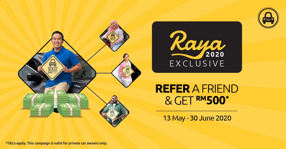 The campaign is open to customers who successfully sold their cars to Carsome between 1 January 2019 and 17 March 2020. By referring friends and family to sell their cars to Carsome from now until 30 June 2020, you can get up to RM500 per referral and up to RM2,500 in total! Click here for more information.