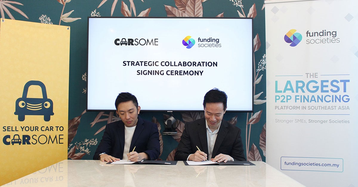 Kuala Lumpur, 18 November 2019 – Funding Societies Malaysia, the largest peer-to-peer (P2P) financing platform in the country and Southeast Asia, has announced its partnership with Carsome, the region’s largest used car trading platform to offer dealer financing, a financing product offered to local car dealers for the purchase of used motor vehicles. Through this collaboration, 1,600 used car dealers under Carsome could potentially benefit from a total financing amount of US$ 200million.