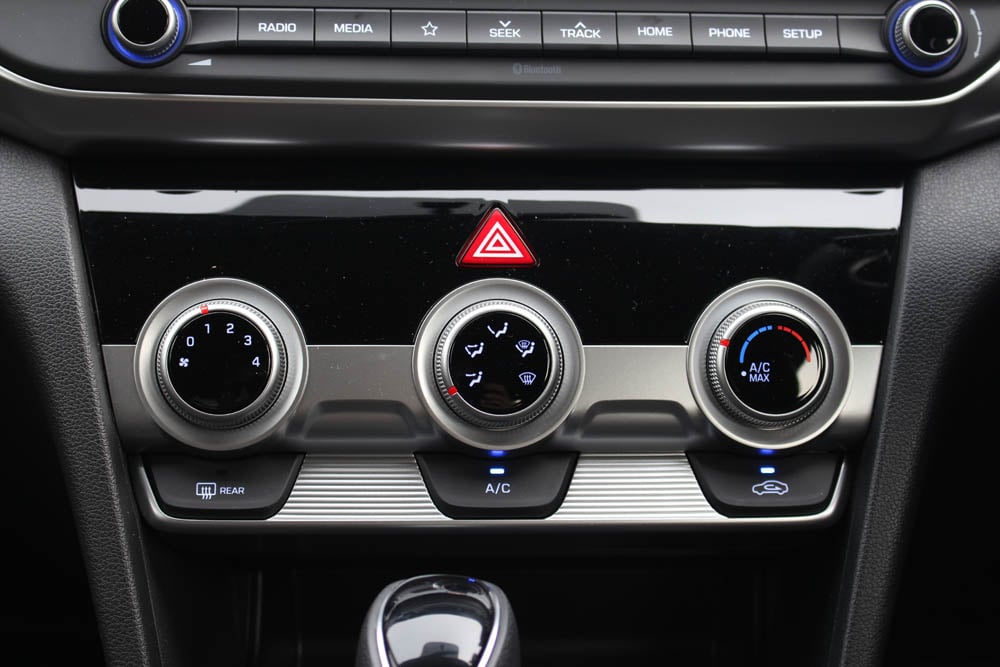 As standard, the Elantra does come with a Smart Key with push start, rear air conditioning vents, a rear-view camera, manual head lamp leveling, Hyundai’s Smart Trunk and the 7-inch touchscreen unit with USB, Bluetooth, voice recognition and compatibility with Apple CarPlay and Android Auto.