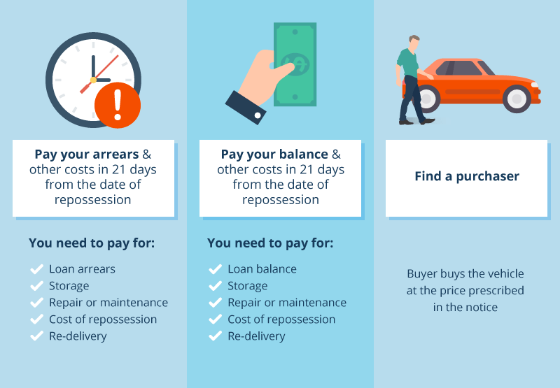 If panicking is on top of your list of what to do after your vehicle has been taken away, take a deep breath and consider your options. It’s not the end of the world if you know what to do, and act quickly. You will receive a 21-day notice to take action before the bank moves on to the next step.