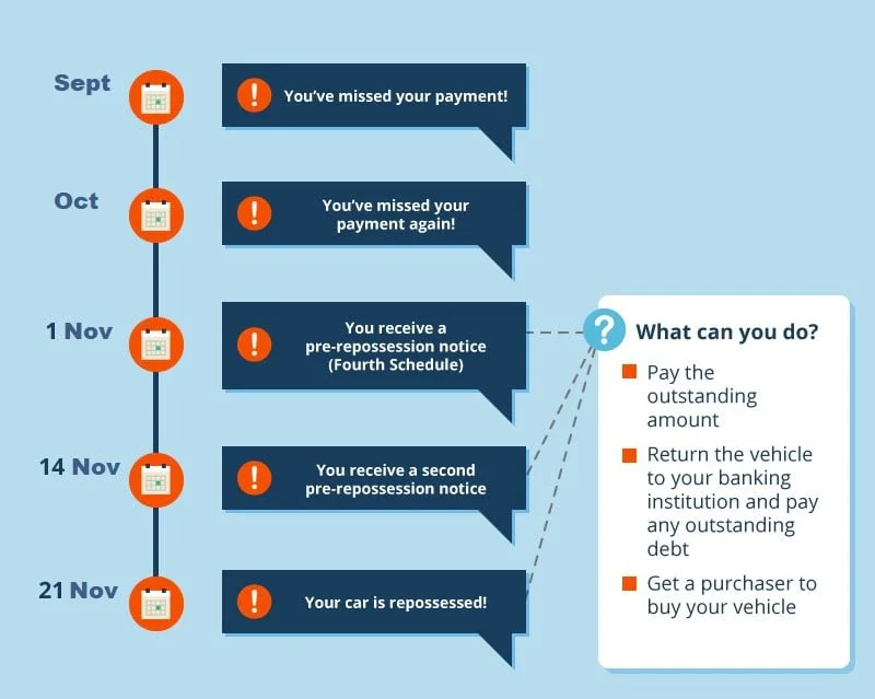 Failing to pay for your car loan puts you at risk of getting your car repossessed by the bank. It’s common sense that if you fail to pay for your loan, your asset will be repossessed, but sometimes life happens and you get a kick in the back in the form of a repossession notice from the bank.