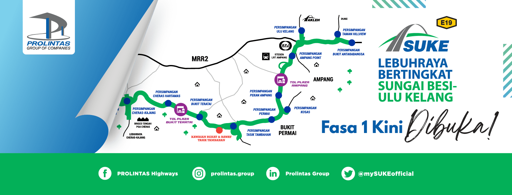 The all-new Sungai Besi-Ulu Kelang Elevated Expressway (SUKE) is a 24.4 KM, three-lane, dual-carriageway that runs from Sri Petaling to Ulu Kelang. Decked with 14 interchanges and reaching out to over 60 residential areas, the SUKE Highway will be connected to major highways and roads in Kuala Lumpur.