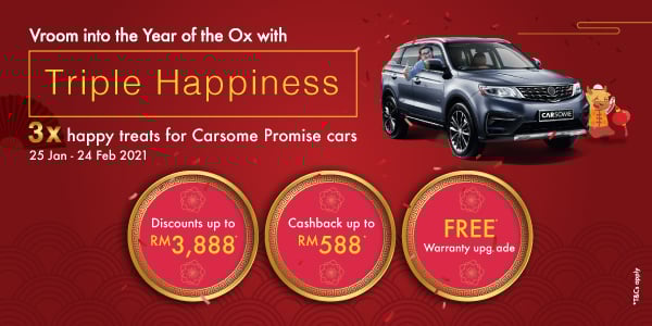Do not let the MCO dampen your CNY spirit, because Carsome takes Happiness to a whole new level with this latest promotion. When you have Carsome’s Triple Happiness, this MCO becomes a whole lot more bearable!